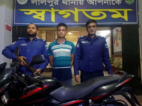 অবশেষে বৃহস্পতিবার (২০ নভেম্বর ২০২৫) দিবাগত রাতে রাজশাহীর চারঘাট উপজেলার টাঙ্গন পূর্বপাড়া এলাকায় অভিযান চালিয়ে মোটরসাইকেলটি উদ্ধার করা হয়। লালপুর থানার ভারপ্রাপ্ত কর্মকর্তা (ওসি) মো. রফিকুল ইসলাম জানান, তাঁর নেতৃত্বে তথ্যপ্রযুক্তির সহায়তায় চারঘাটের টাঙ্গন পূর্বপাড়া এলাকায় অভিযান চালিয়ে মোটরসাইকেলটি উদ্ধার করা হয়। পরে জসিমকে আটক করে লালপুর থানায় নিয়ে আসা হয়। তিনি আরও বলেন, জসিমের বিরুদ্ধে বিভিন্ন থানায় অন্তত ১৭টি মামলা রয়েছে। চুরির ঘটনায় তার বিরুদ্ধে আইনগত প্রক্রিয়া শেষে শুক্রবার আদালতের মাধ্যমে তাকে নাটোর জেলহাজতে পাঠানো হয়েছে।