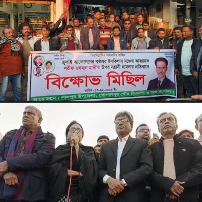 ইনকিলাব মঞ্চের মুখপাত্র ও ঢাকা-৮ আসনের স্বতন্ত্র প্রার্থী শরীফ ওসমান হাদী এবং চট্টগ্রাম-৮ আসনে বিএনপি মনোনীত প্রার্থী এরশাদ উল্লাহ’র উপর গুলির প্রতিবাদে পৃথক বিক্ষোভ মিছিল করেছে লালপুর উপজেলা বিএনপির দুই গ্রুপ।
