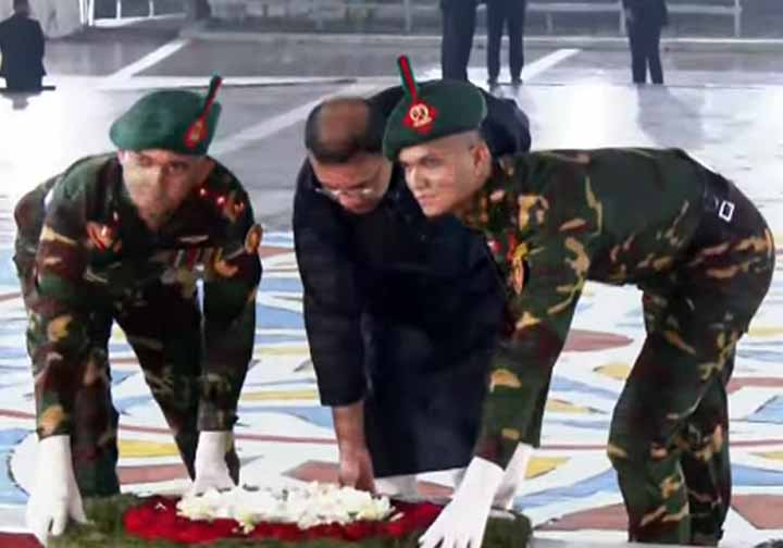 শনিবার (২১ ফেব্রুয়ারি) রাত ১২টা ১মিনিটে কেন্দ্রীয় শহীদ মিনারে পুষ্পস্তবক অর্পণের মাধ্যমে তিনি ভাষা শহীদদের স্মৃতির প্রতি গভীর শ্রদ্ধা জানান। রাত ১২টার সময় তিনি শহীদ মিনার প্রাঙ্গণে পৌঁছান।