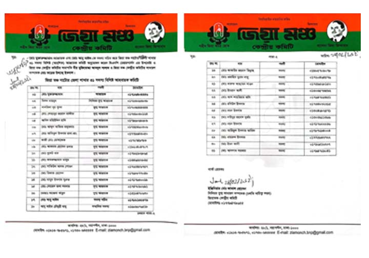 মঙ্গলবার (২৪ ফেব্রুয়ারি) কেন্দ্রীয় জিয়া মঞ্চের সভাপতি বীর মুক্তিযোদ্ধা আব্দুস সালাম ও সাধারণ সম্পাদক মোঃ ফয়েজ উল্লাহ ইকবাল এই কমিটির অনুমোদন দেন ।