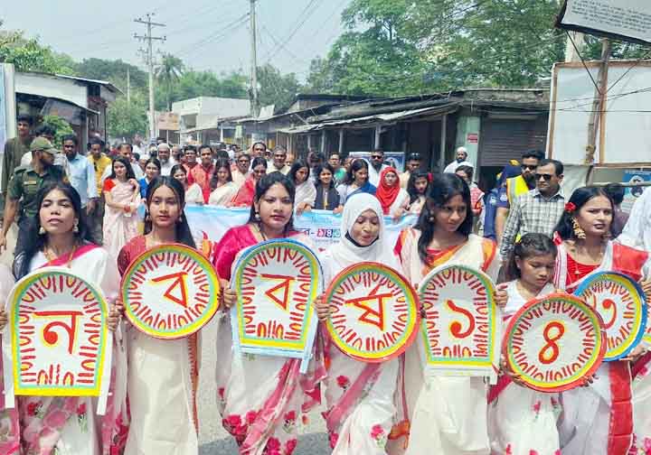 এর আগে উপজেলা চত্বর থেকে ঢাক-ঢোলের বাদ্য, মুখোশ, ফেস্টুন ও রঙিন ব্যানারে সজ্জিত শোভাযাত্রাটি উপজেলার প্রধান প্রধান সড়ক প্রদক্ষিণ করে পুনরায় উপজেলা চত্বরে এসে শেষ হয়। বিভিন্ন শিক্ষা প্রতিষ্ঠান, সরকারি-বেসরকারি দপ্তর, সাংস্কৃতিক ও সামাজিক সংগঠনের অংশগ্রহণে শোভাযাত্রা পায় প্রাণবন্ত ও উৎসবমুখর রূপ। পরে পান্তা-ভাত, মাছ, নানা ধরনের ভর্তা ও দেশীয় খাবারের সমাহার উপস্থিত অতিথি ও সাধারণ মানুষের মধ্যে উৎসবের আনন্দ আরও বাড়িয়ে তোলে।
