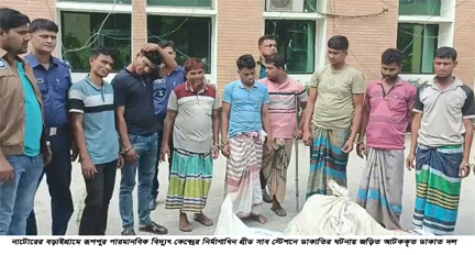 নাটোরের বড়াইগ্রাম উপজেলার কাছুটিয়া এলাকায় রূপপুর পারমানবিক বিদ্যুৎ কেন্দ্রের নির্মাণাধিন গ্রীড সাব স্টেশনে ডাকাতির ঘটনায় জড়িত ১৩ ডাকাতকে আটক করেছে পুলিশ। গাজীপুর থেকে উদ্ধার করা হয়েছে লুটে করা সাড়ে ৩শ’টি ব্যাটারিসহ ইলেকট্রিক মালামাল। শুক্রবার দুপুরে নিজ কার্যালয়ে এক সংবাদ সম্মেলনে পুলিশ সুপার আব্দুল ওয়াহাব জানান, গত ২৫ মার্চ রাতে সশস্ত্র ডাকাতদল বড়াইগ্রাম উপজেলায় কাছুটিয়া এলাকায় নির্মাণাধিন রুপপুর পারমানবিক বিদ্যুৎ কেন্দ্রের গ্রীড সাব স্টেশনে হানা দেয়। এসময় তারা অস্ত্রের মুখে নিরাপত্তা রক্ষীদের বেঁধে ট্রাক ভর্তি করে পাওয়ার স্টেশনের ইলেকট্রিক ব্যাটারি সহ মালামাল লুটে নিয়ে যায়।