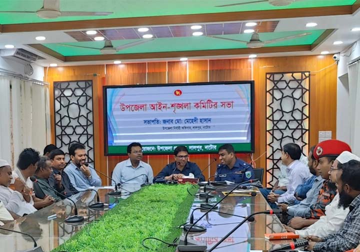 নাটোর প্রতিনিধি : নাটোরের লালপুরে উপজেলা প্রশাসনের আয়োজনে আইনশৃঙ্খলা কমিটির সভা অনুষ্ঠিত হয়েছে। বৃহস্পতিবার (১৮ সেপ্টেম্বর ২০২৫) উপজেলা পরিষদের সভাকক্ষে এ সভা অনুষ্ঠত হয়। উপজেলা নির্বাহী অফিসার মো. মেহেদী হাসানের